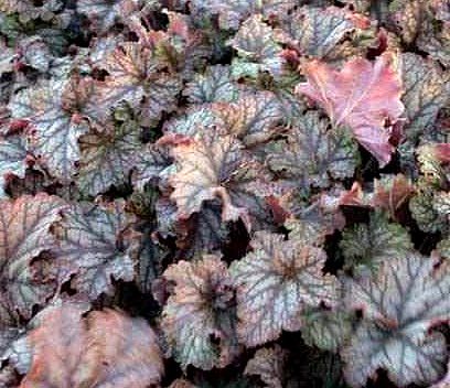 Гейхера (Heuchera) – многолетнее декоративнолистное растение из семейства Камнеломковые, родом из Северной Америки. Включает около 60 видов. Высота куста в среднем 40-50 см. Отличается яркой, меняющейся в течение сезона окраской листьев – от зелёной и серебристой до красной, пурпурной и почти чёрной. Цветение с июня, мелкими колокольчатыми цветками, собранными в метёлки.
