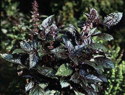 Plandaí Basil (Ocimum basilicum) grianghraf, saintréithe agus plandáil, cúram agus ag fás.
